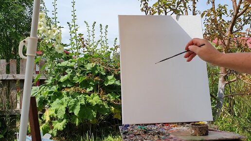 Мальвы в саду. Этюд на пленэре. Живопись маслом.