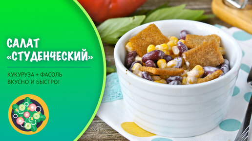 🥗 Салат «Студенческий» из консервированной фасоли и кукурузы с сухариками. Заправка майонез. Просто, быстро и вкусно!