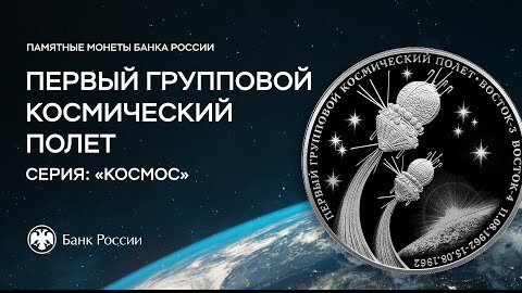 Первый полет двух космических кораблей. Памятная монета Банка России.