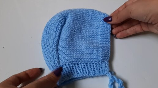 Шапочка чепчик двумя спицами, мастер класс по вязанию