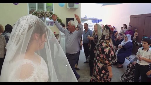 Кумыкская свадьба. Отец женихов танцует с невестами