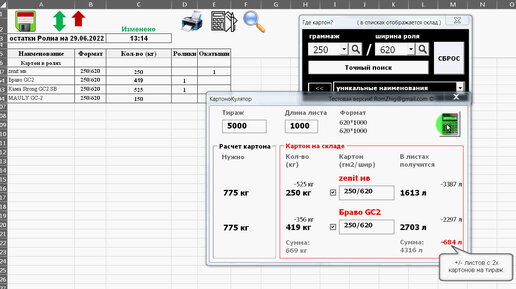Расчет листов