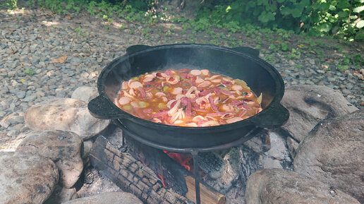 Солянка в казане. Готовим на природе.