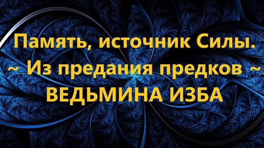 ПАМЯТЬ, ИСТОЧНИК СИЛЫ..ИЗ ПРЕДАНИЯ ПРЕДКОВ_ВЕДЬМИНА ИЗБА_ИНГА ХОСРОЕВА