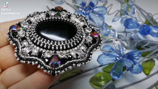 Брошь "Палома". Ручная работа, чёрный опал, японский бисер, кожа.