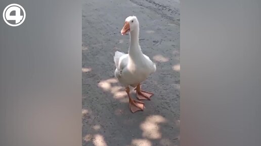 Милое видео дня. Мужчина гуляет по улицам с гусем по имени Малыш