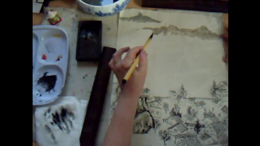 Показываю, как я пишу в китайском стиле се-и. Пейзаж "Деревенька. В стиле художника Ву Яохуа"