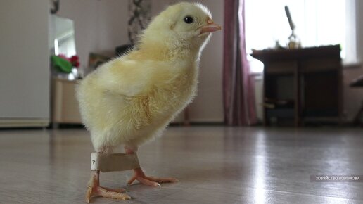 У цыплёнка шпагат. Пластырь на лапах помог исправить проблему