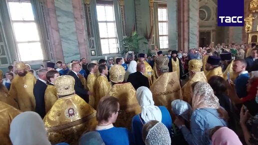 Православные верующие направляются в собор святых апостолов Петра и Павла в Петропавловской крепости Санкт-Петербурга
