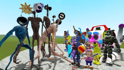 Все сиреноголовые против всех фнаф аниматроников в гаррис мод! игра и игры