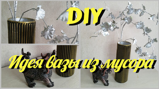 Неожиданная идея вазы из ненужного мусора. Взяла банку из-под чипсов и кусок картона и сделала стильную вазу.