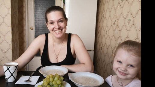 Вкусный ПП завтрак//Овсяная каша на молоке//Немного сочного винограда.