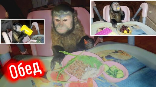 Второе, десерт и компот! У маленькой домашней обезьянки Алексы обед!