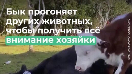 Бык настолько полюбил свою хозяйку, что не давал ей прохода и ревновал к любой живности