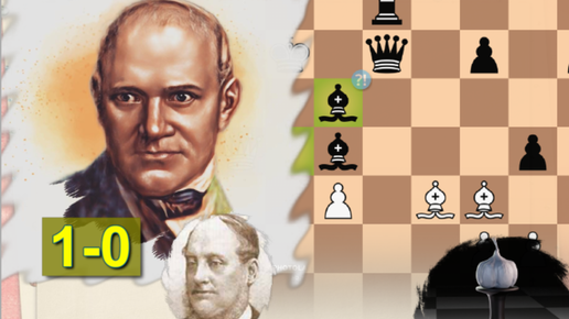 Адольф Андерсен, играя белыми "испанку", дал "порулить" динамичной партией Генри Берду, а затем на контратаке поставил мат (Вена, 1873, 1-0)