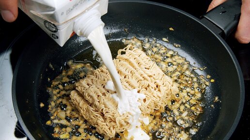 Беру обычный Роллтон и заливаю сливками. Добавляю курочку, и получается пикантный и быстрый ужин (так готовят лапшу в Сибири)