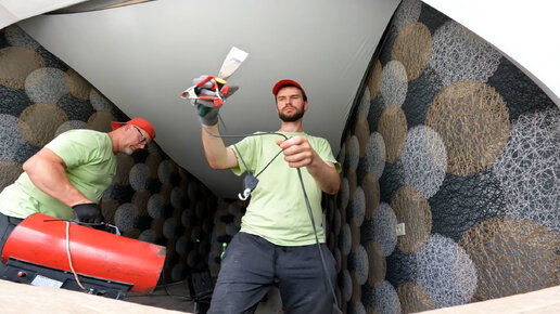Натягиваем натяжной потолок на 5 этаже в спальне