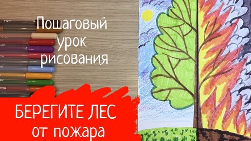 Берегите лес от пожара. Рисунок пожар в лесу. Рисунок на тему пожар. Огонь друг огонь враг рисунок