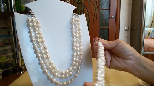 Колье из жемчуга, переделка старых бус из жемчуга, до и после
