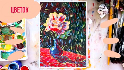 Как нарисовать натюрморт с цветком красками гуашью, пошаговый урок для детей и взрослых