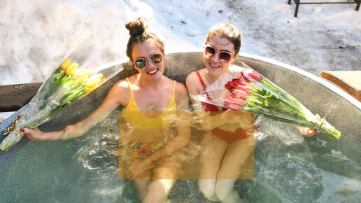Женская баня- СПА девичник. Немного весеннего снега и цветов...