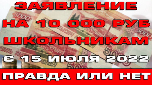 Заявление на выплату 10000 рублей школьникам можно подать с 15 июля Правда или нет