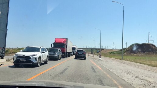 Все едут на море. Пробки на дорогах в сторону Крымского моста, Темрюкский район. Курортный сезон в самом разгаре, дорога на море летом