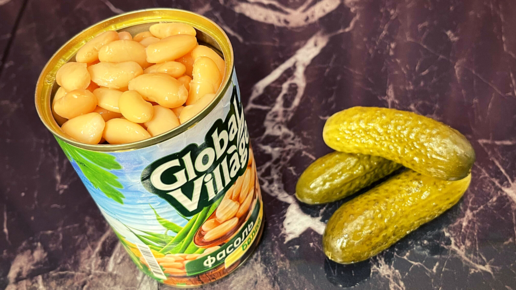 Беру банку фасоли и солёные огурцы: готовлю "Бюджетный" салат из самых простых продуктов (делюсь вкусным и доступным рецептом)