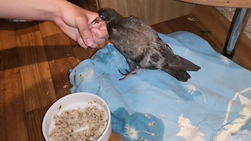 Изголодавшийся Птенец обожает гречку, "ныряет с головой" 😉🤗