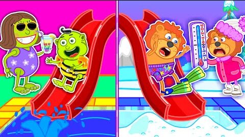 Lion Family | Leo and Baby, Play Safe with Water Slide! | Cartoon for Kids
