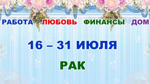 ♋ РАК. 🍀 С 16 по 31 ИЮЛЯ 2022 г. 💫 Главные сферы жизни. 🔮 Таро-прогноз