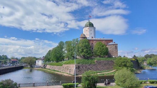 Прекрасная прогулка с видом на Выборгский замок в июне