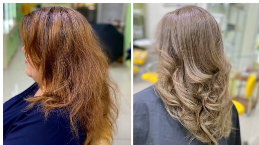 Без смывки и без обесцвечивания - удаление красноты из волос. Окрашивание в натурально пепельно русый без зелени и рыжины.