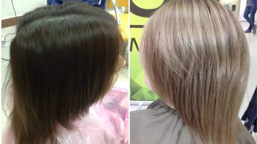 Безопасное удаление темного цвета - из темного в русый. Декапирование темного цвета волос. Окрашивание волос в холодный русый после смывки