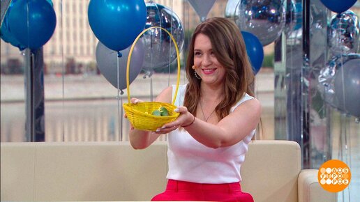Корреспондент «Доброго утра» Елизавета Никишова поздравляет программу с 35-летием и дарит ведущим огурчики, выращенные своими руками