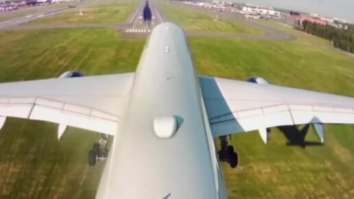 Аэробус 350, вид сверху, приземление, аэропорт Шереметьево