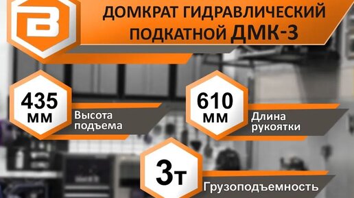 Домкрат автомобильный гидравлический подкатной ДМК-3 (3 т, 135-435 мм) Вихрь.