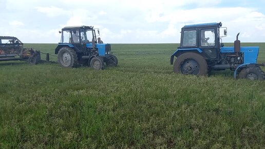 Сенокос посадили 4 МТЗ и две жатки Полесе и Дон-мар.