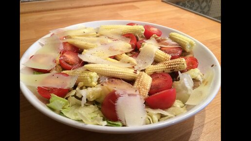 Салат с шампиньонами и беби-кукурузой. Готовят дети. Cooking kids.
