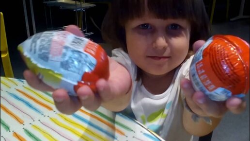 Открываем Киндер сюрприз в ресторане ИКЕА. Распаковка шоколадных яиц фиксики.