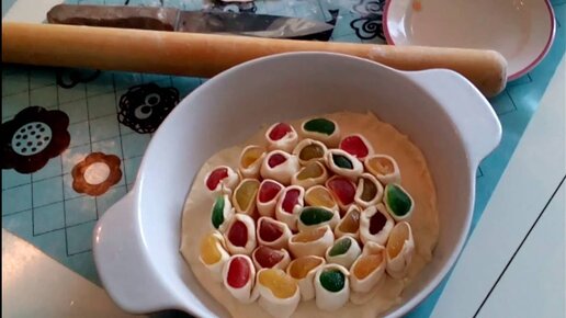 Самый яркий пирог из мармелада. Пирог с конфетами. Маленькие поварята.