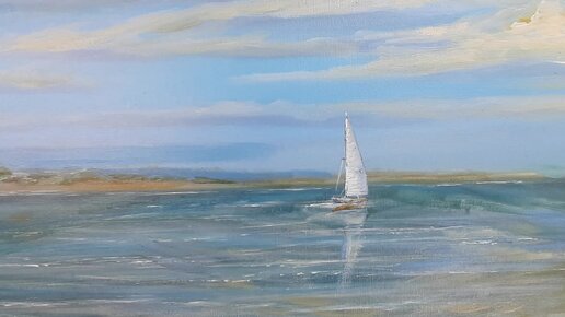 "Белый парус. #Азовскоеморе"" морской пейзаж Н.Журавлёвой, живопись #ZhNataly #картина 40х60, пленэр, холст/масло