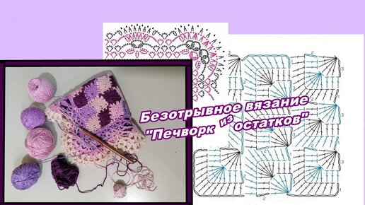 Безотрывное вязание Пэчворк из остатков нитей крючком.