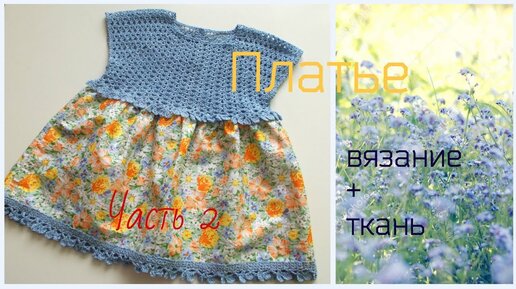 Детское комбинированое платье.Ткань+крючок.Часть 2