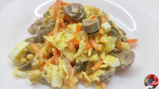 Оригинальный салат из куриных сердечек, полюбите с первой ложки.