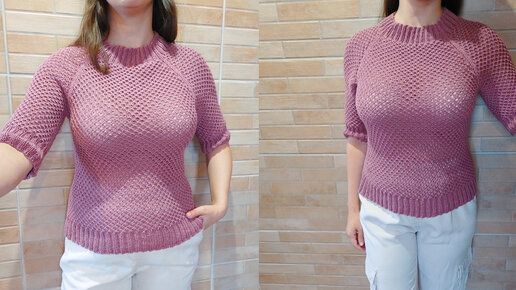 Летний джемпер "Сетка" спицами. Подробный мастер-класс