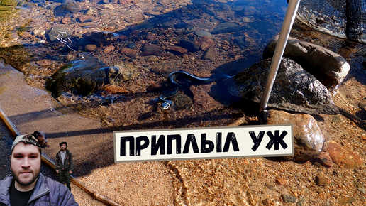 К нам приплыл обыкновенный уж. Змея почуяла рыбу.