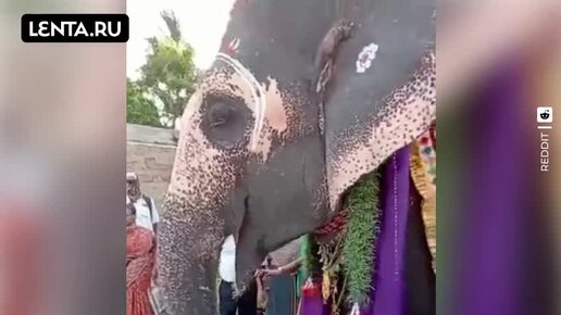 Люди устроили слонихе праздник в честь дня рождения. Именинницу нарядили в красивый наряд и накрыли для неё праздничный стол