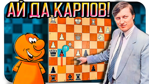 Карпов жертвует ладью и разрывает Тиммана в 25 ходов чёрными фигурами. Шахматы