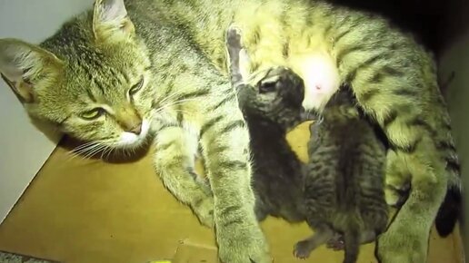 Приютил бездомную кошечку с новорожденными котятами